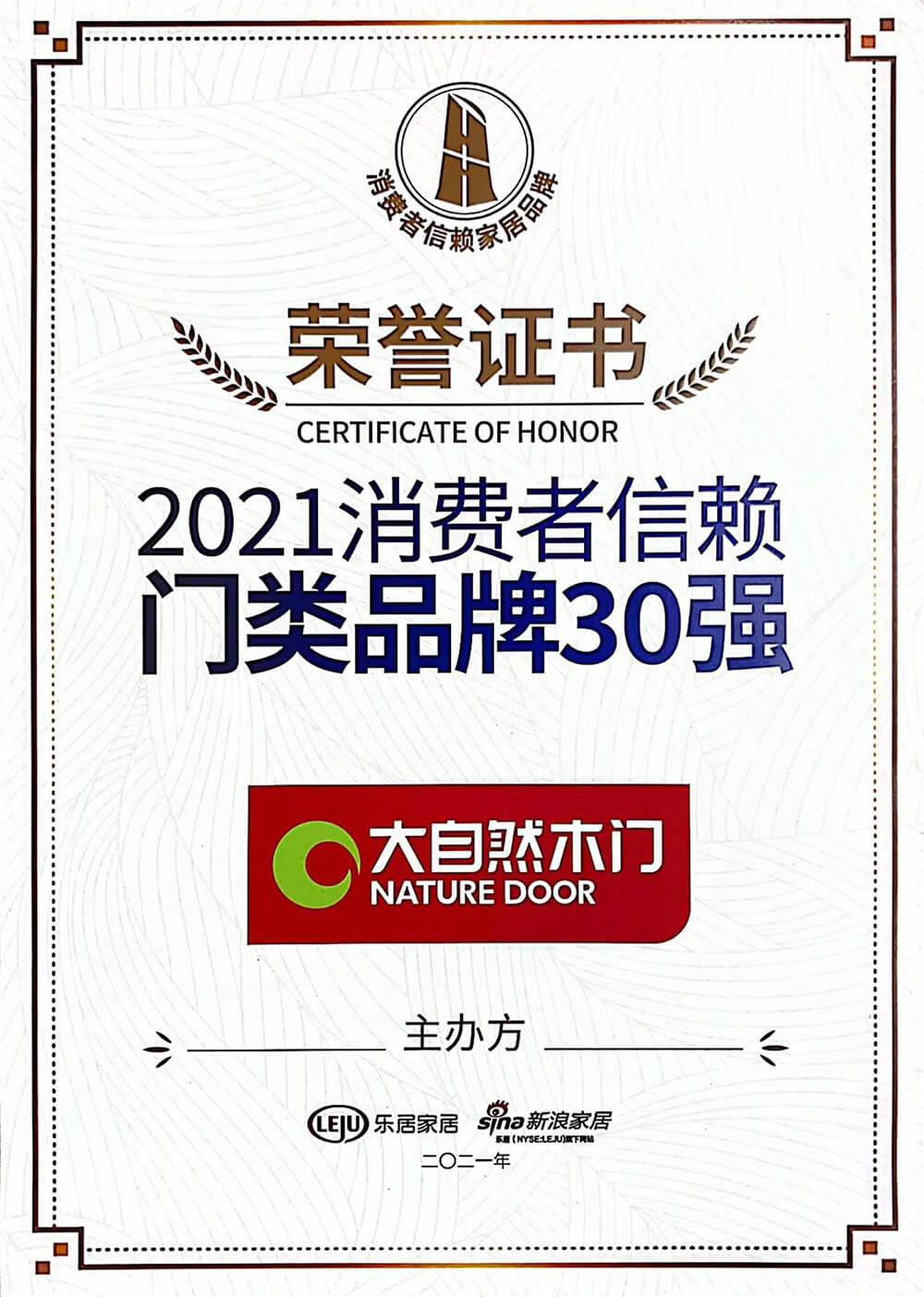2021年12月18日,由樂居家居主辦,新浪家居承辦,CCTV·大國品牌、中國質(zhì)量新聞網(wǎng)·家居、家頁傳媒、大國中居聯(lián)合主辦的『智見·2021中國家居新時代盛典暨金致獎頒獎典禮』于廣東佛山盛大開幕。歷經(jīng)品類30強品牌評選、網(wǎng)絡票選及專家評審等環(huán)節(jié),榜單終于正式揭曉,大自然家居榮膺『智見·家居新時代』2021消費者信賴十大家居品牌以及2021年消費者信賴門類品牌30強雙獎項。