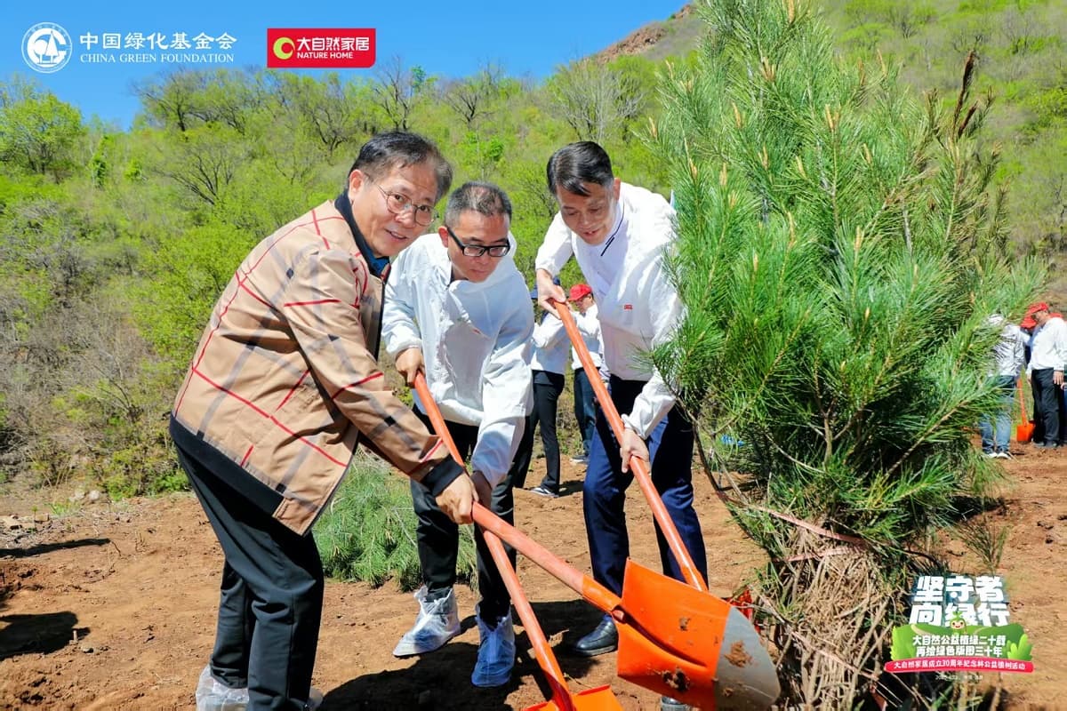 4月22日,值第56個世界地球日之際,大自然家居攜手中國綠化基金會,于北京密云區(qū)啟動“堅守者·向綠行”公益植樹活動。大自然家居以“成立30年、植樹20年”的雙里程碑,交出了一份“綠色智造”與“生態(tài)反哺”共生的可持續(xù)發(fā)展答卷?;顒蝇F(xiàn)場,中國綠化基金會、北京市園林綠化局、北京林學會、中國林業(yè)科學研究院、中國林產(chǎn)工業(yè)協(xié)會、中國林業(yè)產(chǎn)業(yè)聯(lián)合會、中國木材保護工業(yè)協(xié)會、中國木材與木制品流通協(xié)會代表,大自然家居高層管理人員、全國核心經(jīng)銷商和供應商代表,媒體以及大自然家居消費者、公益植樹環(huán)保志愿者等各界人士,見證“中國綠色版圖”公益工程20年成果及未來十年計劃啟動。