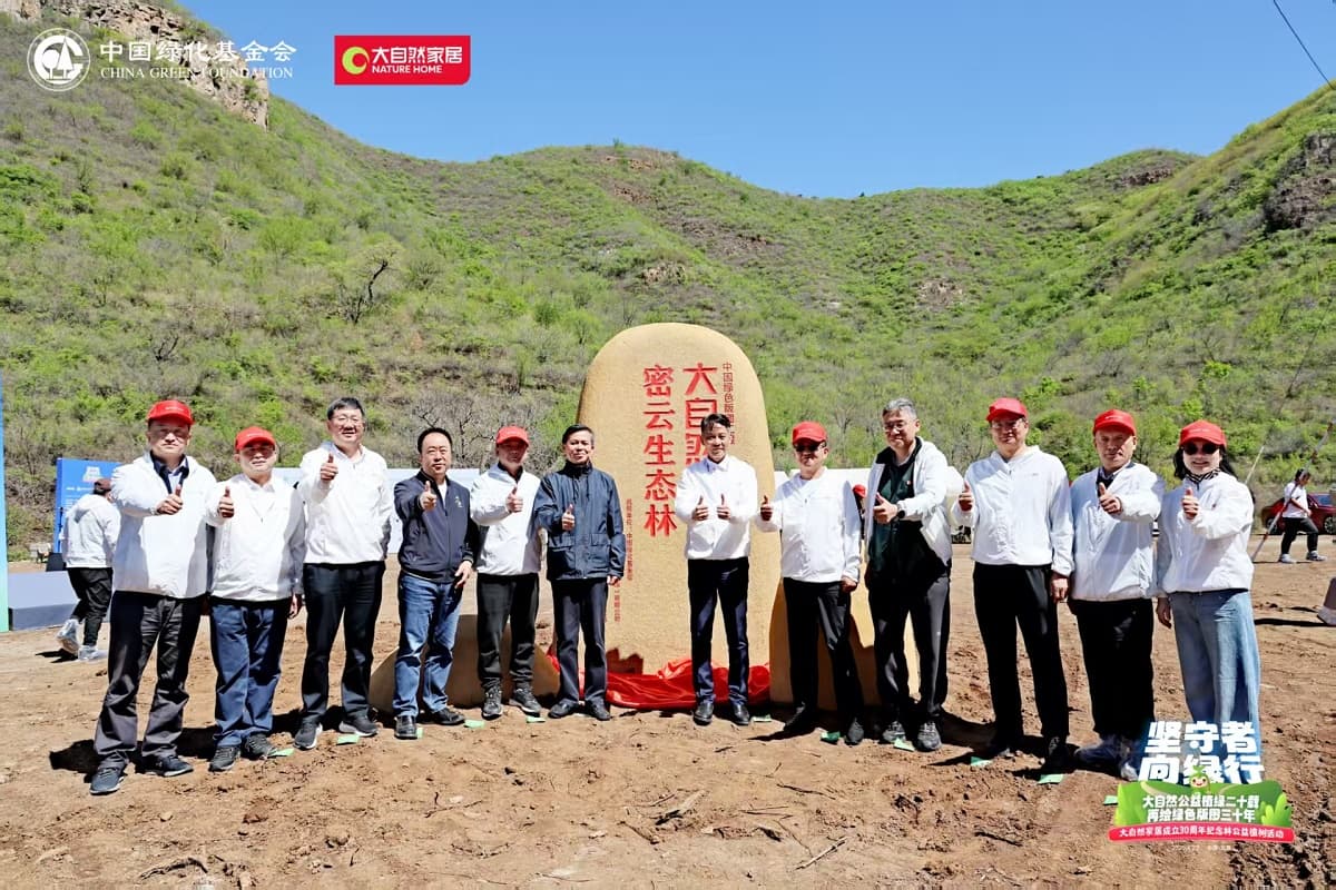 在密云生態(tài)林揭幕儀式上,中國綠化基金會主席陳述賢、大自然家居董事長佘學彬、北京市園林綠化局二級巡視員王小平、中國綠化基金會副主席徐濟德、中國林業(yè)產(chǎn)業(yè)聯(lián)合會會長封加平、中國綠化基金會副主席陳蓬、中國綠化基金會副主席葉智、中國綠化基金會秘書長張全洲、中國木材保護工業(yè)協(xié)會會長劉能文、中國木材與木制品流通協(xié)會會長李佳峰、大自然家居副董事長袁順意等,共同為“大自然30周年紀念林”揭幕。密云生態(tài)紀念林的落地,不僅見證了大自然家居30年來在綠色發(fā)展道路上的堅守,更彰顯了其將可持續(xù)發(fā)展理念轉(zhuǎn)化為產(chǎn)業(yè)實踐的戰(zhàn)略定力。