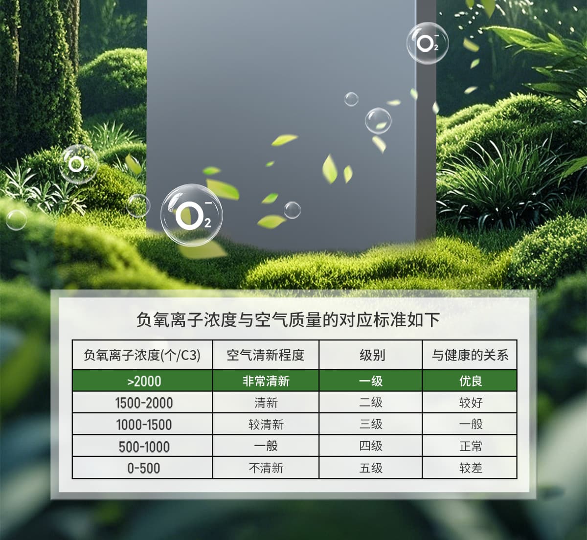 誘發(fā)空氣負(fù)離子量 比基礎(chǔ)環(huán)境提高10倍+